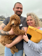 “From the moment we saw our Rosie, we fell in love! The communication and the attention to details throughout the whole time was perfect. Rosie is so sweet and cuddly and has fit in perfectly with our older goldendoodle. I would highly recommend to anyone looking for a fur baby!” Vickie Schneider, owner of Pecan, now Rosie